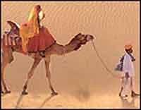 DESERT SAFARI : An innovative adventure in boundless ocean of velvety sand of Rajasthan. Discover either majestically on camel or on camel cart. Set out on your adventure to unfold the blissful pleasure quietly sleeping in the lap of RAJPUTANA NOW "RAJASTHAN". Heralding proudly a prestigious position in the world map of tourism for its intricately woven architecture on gigantic forts, aristocratic palaces, superb traditional garments, delicious dishes, melody of folkore and artistic footwear. VINO DESERT SAFARI offers you all . Situated conviniently in the northwest of Rajasthan, you will find us eagerly waiting to give you a wonderful journey through desert. Choose your route for safari out of many available with us. It is a complete "OFF THE BEATEN TRACK". Adventure embodied with charm, excitement and un-known experience for you. You will be encircled by placid village folks. Melodies spring from wandering minstrels and delicacies prepared by our cooks. Glide down through the desert on CAMEL back mile after mile after mile.....! You cant turn your eyes away from spectacles of distant sand dunes shining brightly in the sun light. You will see occasional passer by's with turbans bigger than their head, meticulously plaited. You cant resist asking them the art of its formation - they would answer you before your query. It is "SAFA," sir or bounty of belles parading in a row, swinging their waist, loaded with half a dozen pitchers filled with water on their head , or small boys waving their hands with friendly greetings. You go on moving counting the footsteps of your camel man. You are exhausted after your day long journey on camel back and you are stopped by villagers, eager to help you. Indulging in pidgin English, they quench your thirst, appease your appetite, wipe out all your exhaustion. It is an unparalleled experience undreamt. You are at home away from home ready for sojourn. You sit cross legged for dinner.Neverthless you are served with what you asked for plus, "SANGRI SAG" a native dish. You are sitting amidst amiable folks with eye catching dresses, particularly women veiled with star studded "ODHNIS " and arms laden with bangles. They would sing folkore accompanied with "DHOL" or melody of BHOPAS amplifying through "RAVANHATHA" and their enthralling footwork. Either sleep in a tent or outside on the bed of sand . Get the warmth of the naked SKY over your head, count the scintilating stars. May be you are perturbed with interminent sounds of barking dogs or peacock screams piercing through balm pitch dark nights. It is an affectionately irritating experience of the night. LAND VILLAGES AND TOWNS : "MARUSTHALI" as we call this desert country, literally means the region of death. But , on exploration of this area , it can be discovered that inspite of all adversities it is full of life, containing all elements of an independent ecosystem. The land here is distinctly of three type - Plains, huge sand hills (Some bare and others dotted over with vegetation ) and shifting Sand Dunes. It is not like SAHARA and has no OASIS. It has ample of DEEP WELLS, depth of water being at 400 ft. Rains are scarce here, but, a little rain can transform the sand dunes temporarily into green valleys , where "SIWAN" the tall desert grass sprouts out. In October and November "MATIRA" the desert melon is available in plenty and is renowned for its sweetness. The people here are mainly farmers engaged in pastoral activities and cattle rearing. The RAIKAS or REBARI tribes are here for centuries. They have their own heards of camels, sometimes numbering in many hundreds of camels. Other occupations are weaving, carpentry, black & gold smithery, pot making etc. The villages are small having few huts or some mud houses. Villagers need very little from the outside world, as they produce and manufacture for their own needs. "DHANI" is a cluster of few huts situated on some sand dune separately. It is a kind of farm house and should'nt be confused for a village. For nature lovers, BIKANER offers wild life and vegetation, beautiful desert landscape, sun, sand and camping. There is a varied store of wild life in this area; Antelope, Fox, Jackal, Rabbit, Blue Bull, Desert Cat, Chameleon, Monitor Lizard, Mongoose, Hedgehog, Squirrel etc. Bird Life is exciting and abundant. "PACHA AAYA" menaing "come again", the villagers would request you when you leave their village. You must reluctantly take your leave. Their hospitable gestures, affection and music will leave an indelible memory. A souvenir of reminiscences of "VINO DESERT SAFARI " indeed a discovery. When the safari is over, the memories of this outstanding experience will remain with you for many years! |